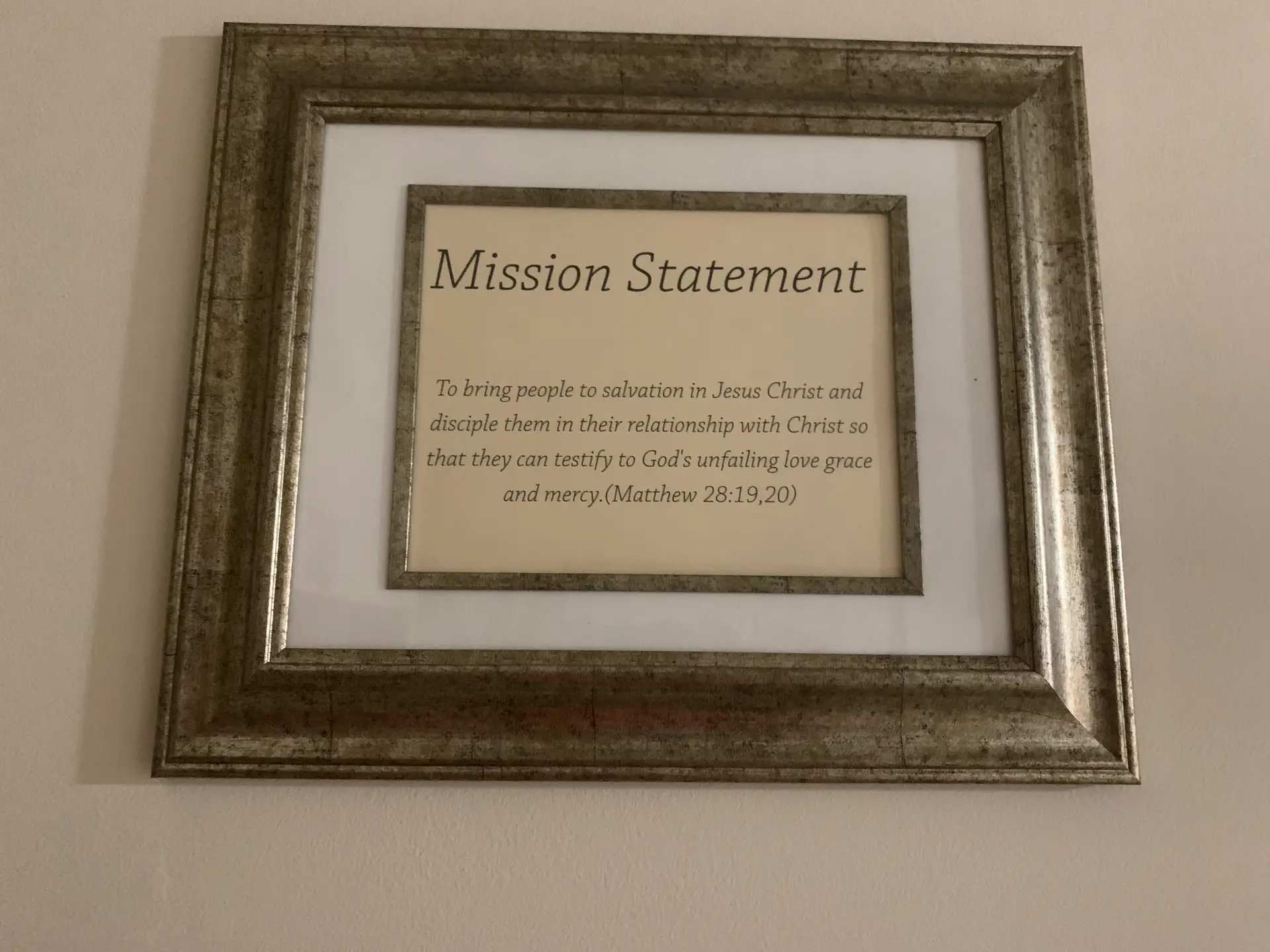 Bringing Our Neighbors to faith in Jesus Christ and disciplining them in their relationship with Jesus so that they can testify to God’s unfailing love, grace, and Mercy. (Matthew 28: 19-20)